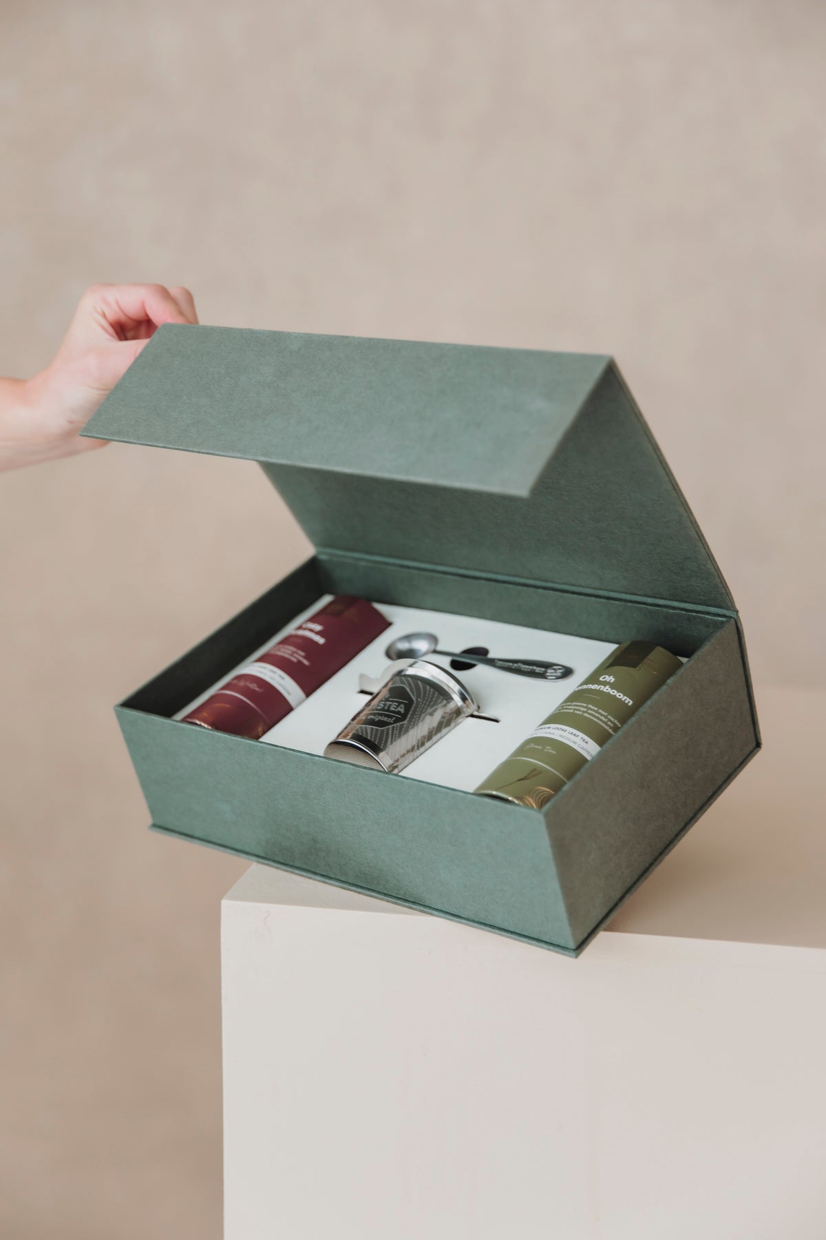 Een uniek cadeau voor elke theeliefhebber! Deze giftbox bevat alles wat je nodig hebt om thuis of onderweg te genieten van heerlijke losse thee.